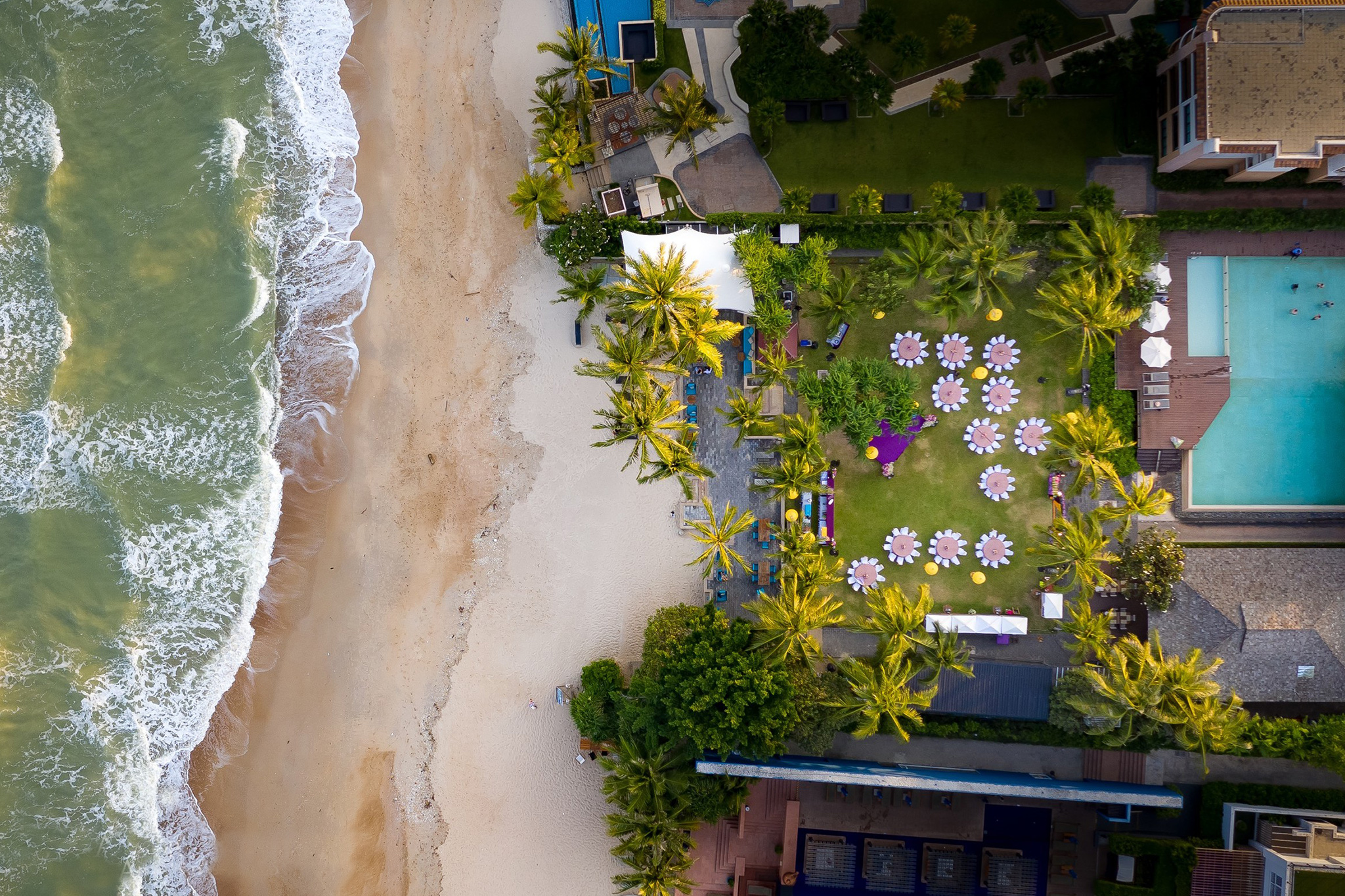 Palayana Hua Hin is a 5 star boutique beach resort located in Hua Hin Thailand. The hotel offers a private sandy beach and a spacious green lawn which makes it a great place to plan your celebrations.  A perfect fit for destination weddings with a guest size between 100 to 120.