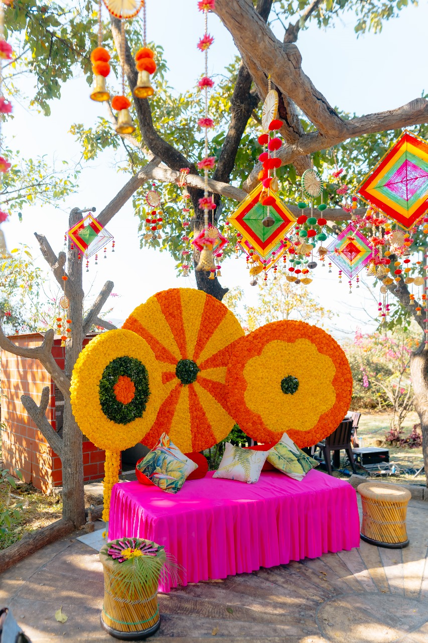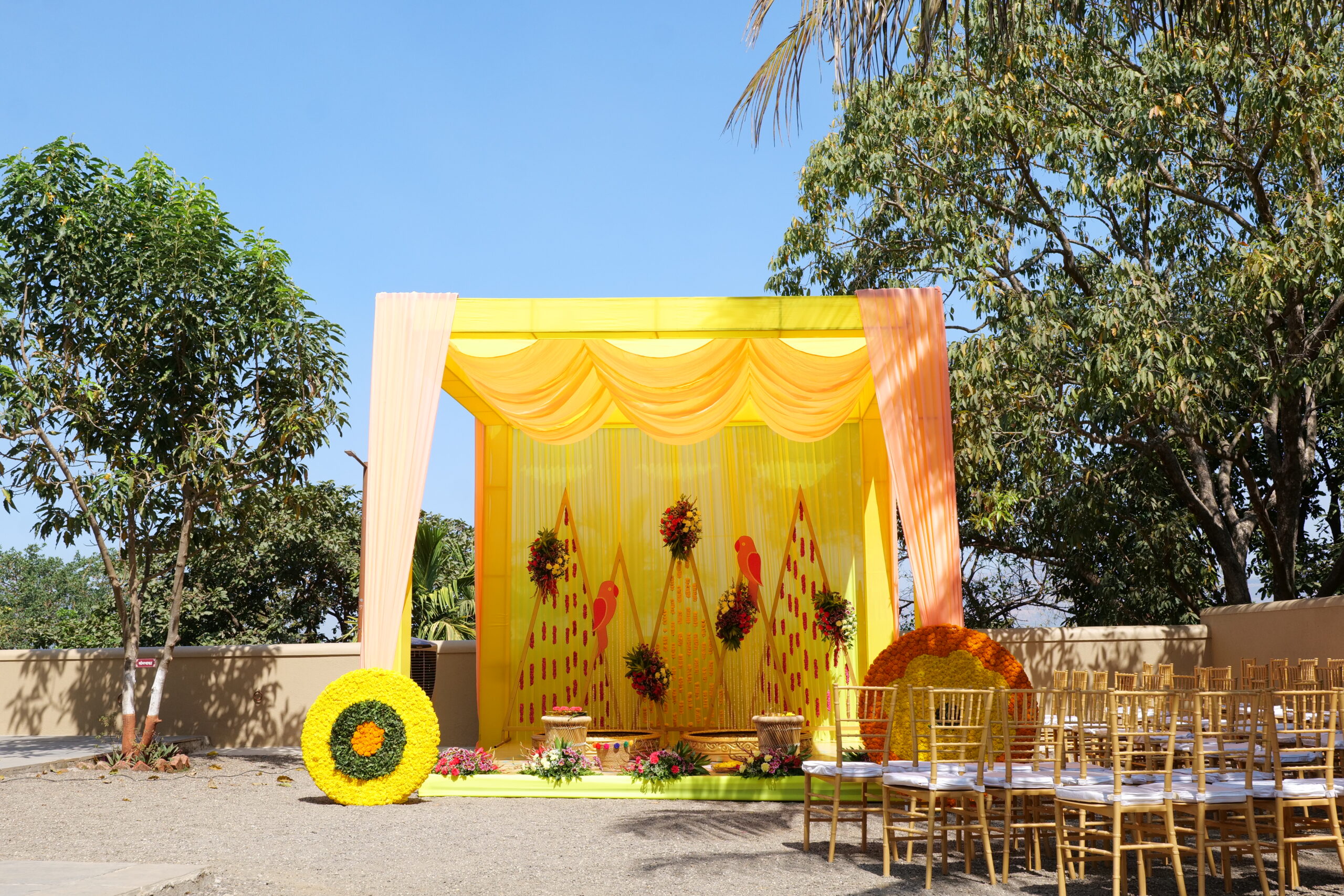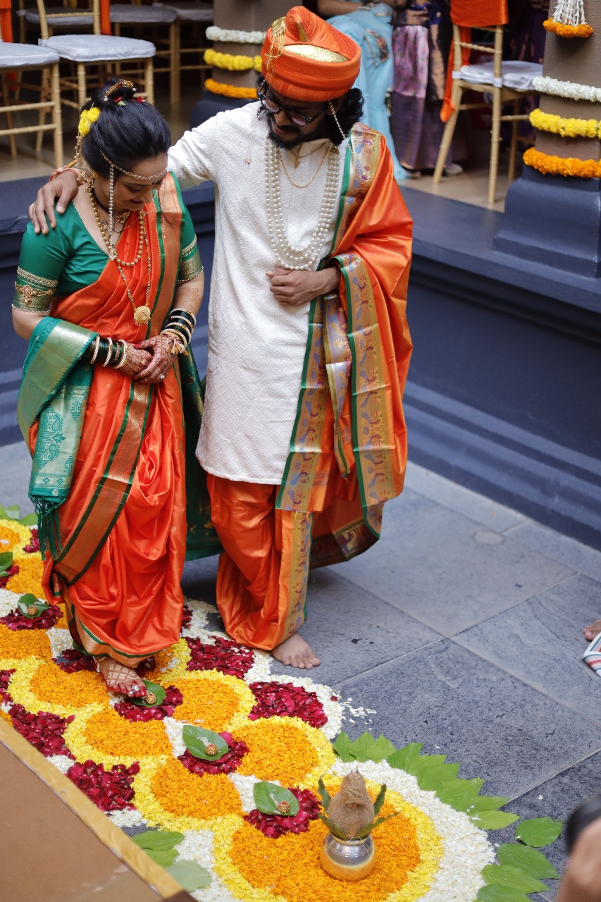 After a due research on the locations and keeping in mind their traditional maharashtrian roots, they decided to go for a Lonavala destination wedding. They chose Dhepewada as their wedding venue and celebrated over three events over a span of two nights by keeping the guest list initimate by only inviting their close and special people. The venue offers a lovely ambience with a traditional look and feel with an old world charm which is nostialgic.