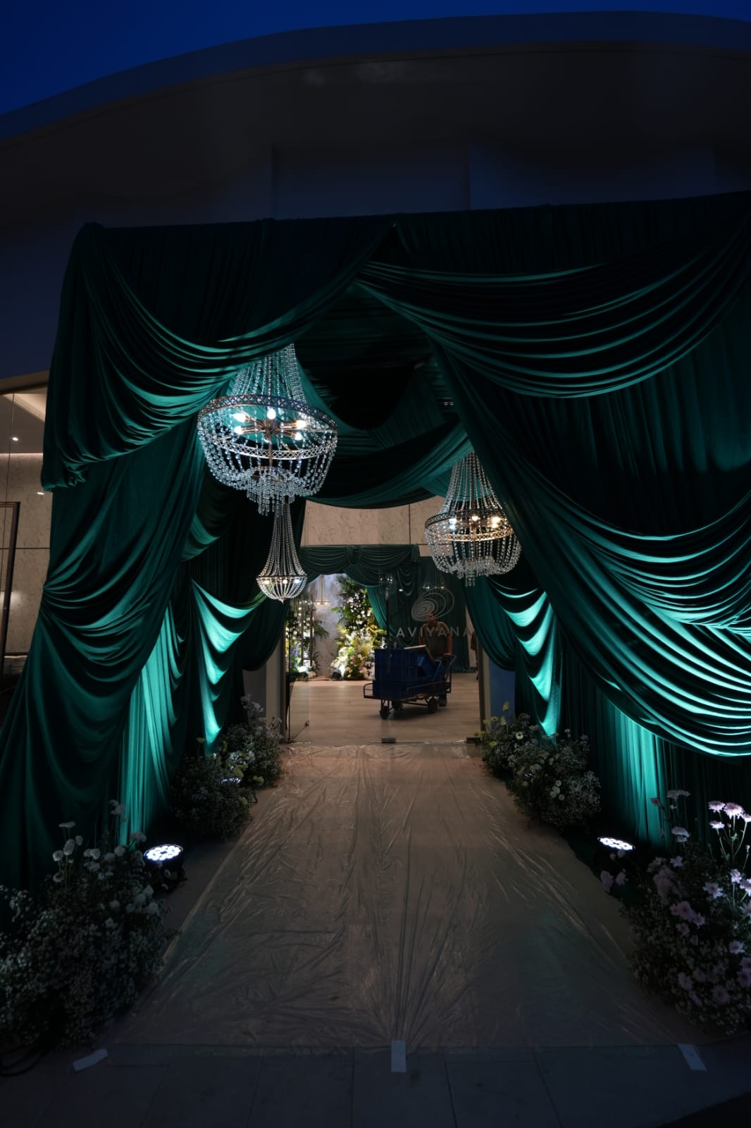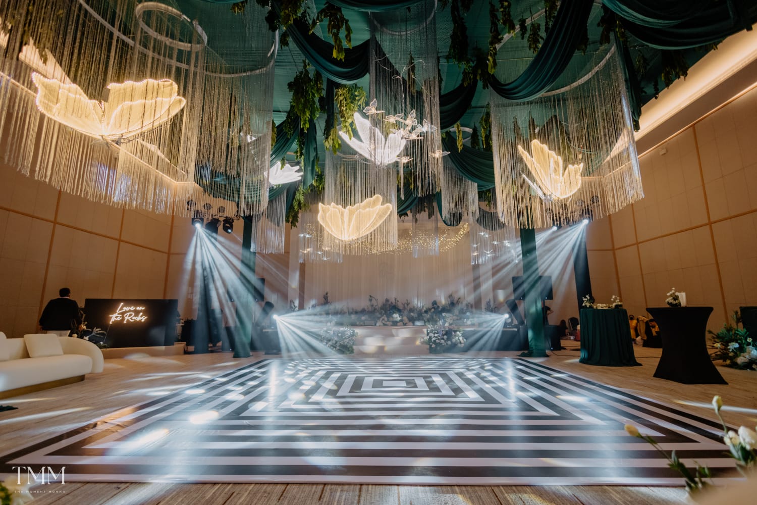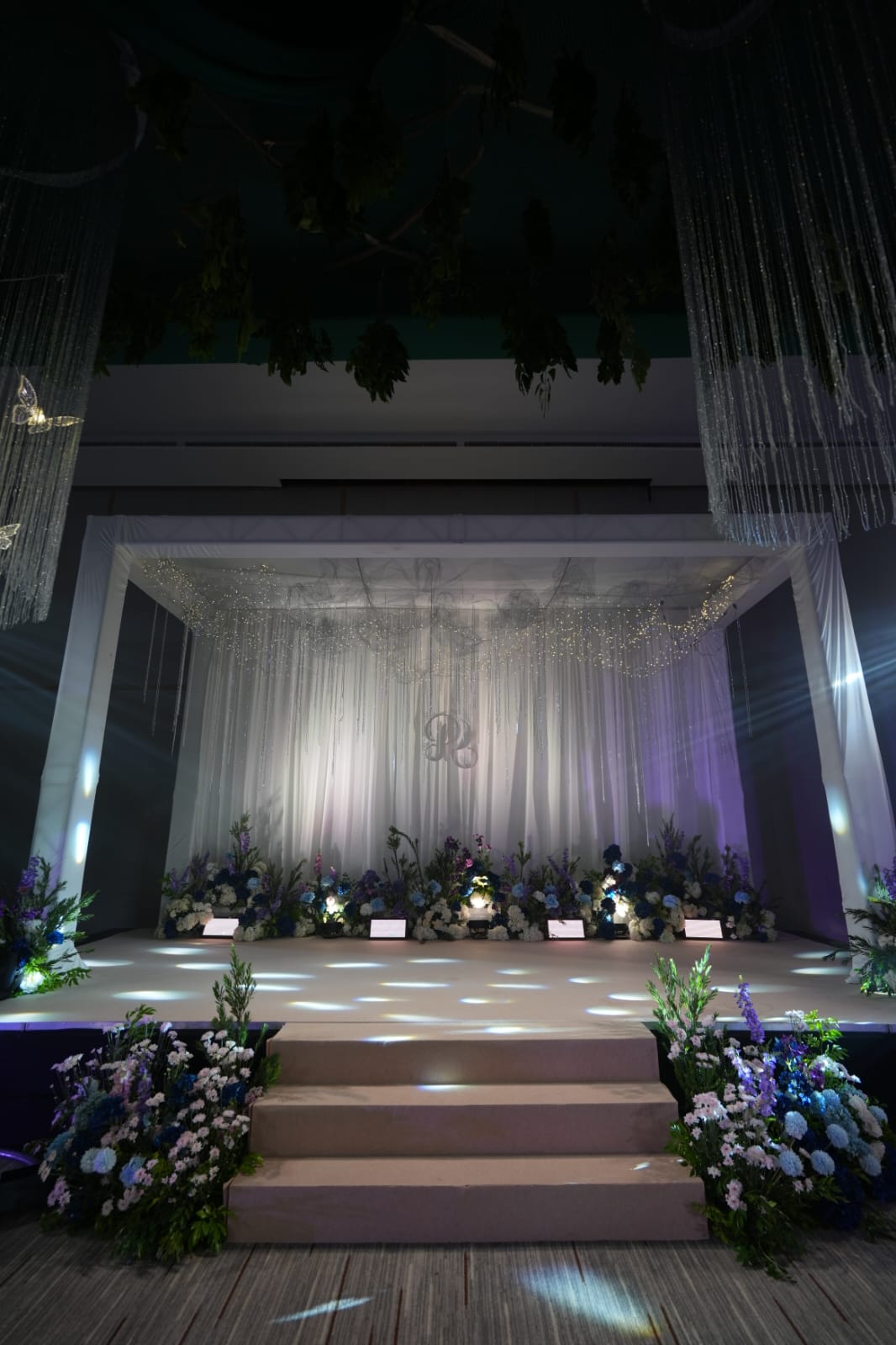 Taking Emerald green and silver color as a base, a grand decor was set up at the ballroom for the sangeet event. Led wing girls accommpanied the bride as she made a dazzling entry. Thai dancer troupe entertained the guests with their performances on bollywood numbers.
