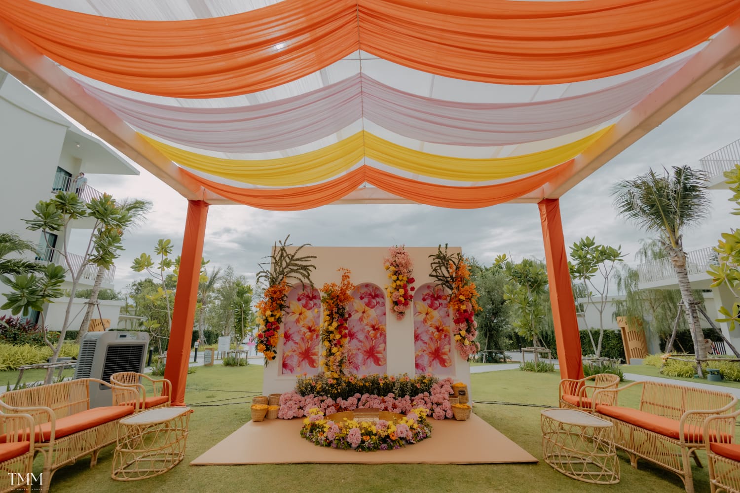 Parul and Rohit’s destination wedding in Thailand was a sudden joyride which turned into a fairytale in no time! Parul contacted us in May 2025 to organize her wedding which was scheduled in June 2025 and she wanted Thailand to be her wedding location. We barely had three weeks to do the planning and get everything in place. We did a quick research on the availability of venues and locked in Aviyana Resort in Hua Hin Thailand. Over 200 guests flew in from different countries over the world including USA, UK, Australia, Canada and India to celebrate Parul and Rohit’s wedding in Thailand. Five events were planned on a span of three nights amongst which Sangeet and Wedding and Reception were at grand scale.