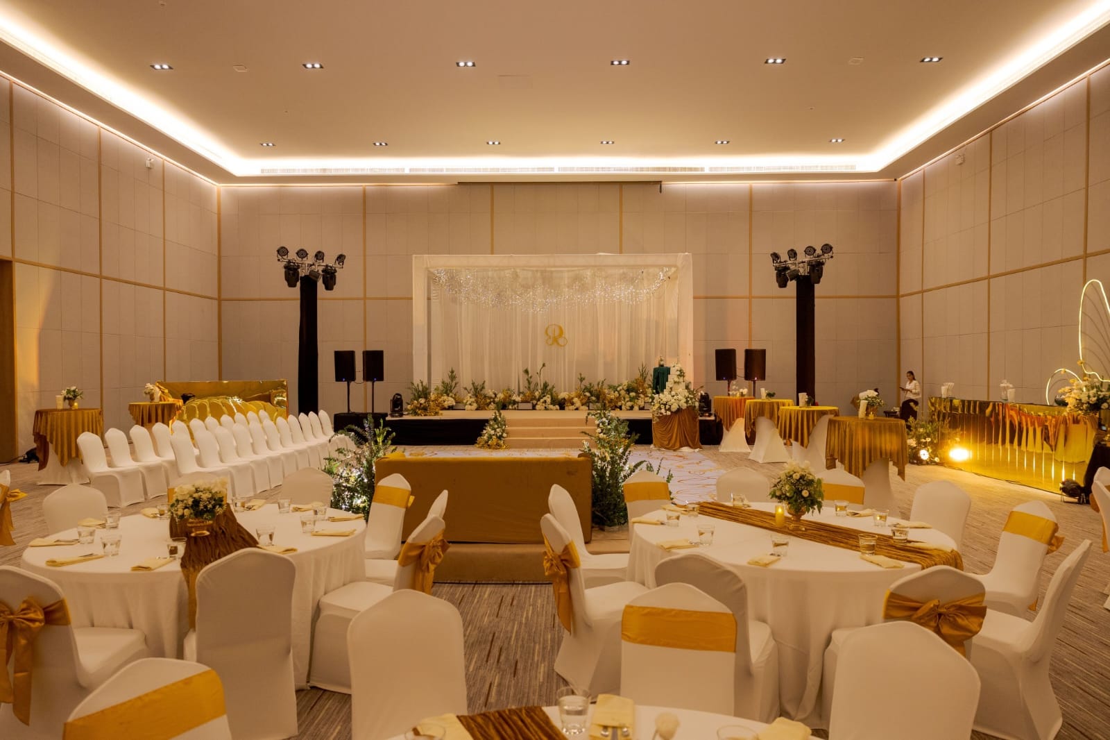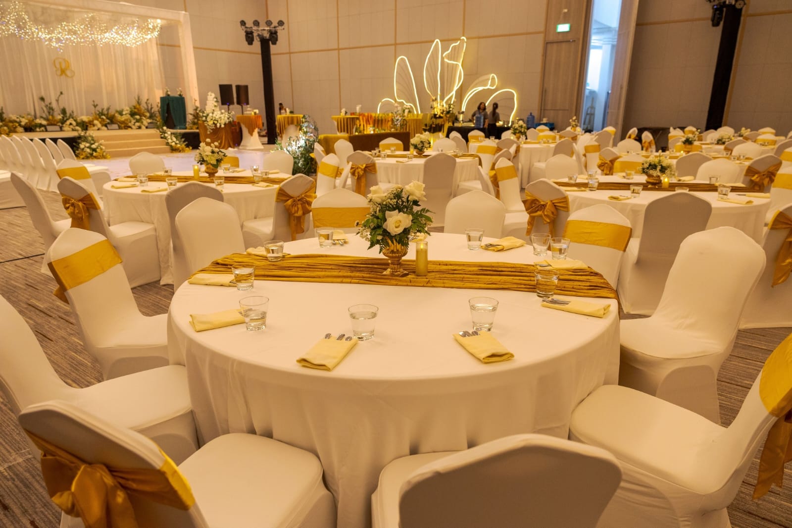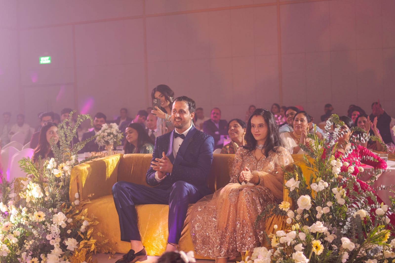The set was white and Gold and so was the celebration. The newly married couple made a toast and cut the wedding cake, after a couple of photo sessions came the time when every member of the family and friends delivered lovely dance performances expressing their happiness on the union of two beautiful people.